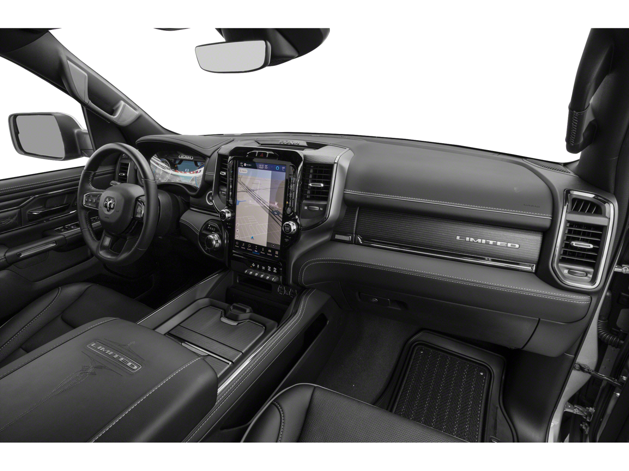 10 Speakers, 3.21 Rear Axle Ratio, 4 Way Front Headrests, 4-Wheel Disc Brakes, 48V Belt Starter Generator, ABS brakes, Active Noise Control System, Adjustable pedals, Air Conditioning, Alloy wheels, AM/FM radio: SiriusXM with 360L, Apple CarPlay/Android Auto, Audio memory, Auto High-beam Headlights, Auto-dimming door mirrors, Auto-Dimming Exterior Driver Mirror, Auto-Dimming Exterior Passenger Mirror, Auto-dimming Rear-View mirror, Auto-leveling suspension, Automatic temperature control, Bodyside moldings, Brake assist, Bucket Seats, Bumpers: chrome, Chrome Exterior Mirrors, Cold Weather Group, Compass, Convex Wide-Angle Mirror Insert, Delay-off headlights, Driver door bin, Driver Seat Memory, Driver vanity mirror, Dual front impact airbags, Dual front side impact airbags, Dual Rear Exhaust w/Bright Tips, Electronic Stability Control, Engine Block Heater, Exterior Mirrors Courtesy Lamps, Exterior Mirrors w/Heating Element, Exterior Mirrors w/Memory, Exterior Mirrors w/Supplemental Signals, Front anti-roll bar, Front Bucket Seats, Front Center Armrest w/Storage, Front dual zone A/C, Front fog lights, Front License Plate Bracket, Front reading lights, Front Seat Back Map Pockets, Front wheel independent suspension, Full Length Premium Floor Console, Fully automatic headlights, Garage door transmitter, Genuine wood console insert, Genuine wood dashboard insert, Genuine wood door panel insert, Heated door mirrors, Heated Front Seats, Heated front seats, Heated rear seats, Heated Second Row Seats, Heated Steering Wheel, Heated steering wheel, Heavy-Duty Engine Cooling, HEMI Badge, Illuminated entry, Leather steering wheel, Low tire pressure warning, Manufacturer's Statement of Origin, Memory seat, MOPAR Winter Front Grille Cover, Navigation System, Occupant sensing airbag, Outside temperature display, Overhead airbag, Overhead console, Panic alarm, ParkView Rear Back-Up Camera, Passenger door bin, Passenger vanity mirror, Pedal memory, Power 4-Way Driver Lumbar Adjust, Power 4-Way Passenger Lumbar Adjust, Power 8-Way Driver & Passenger Seats, Power door mirrors, Power driver seat, Power passenger seat, Power steering, Power windows, Power-Folding Mirrors, Premium Leather Trimmed Bucket Seats, Quick Order Package 28M Limited, Radio data system, Radio: Uconnect 5 Nav w/12.0 Display, Rain sensing wipers, Rear 60/40 Folding Split Recline Seat, Rear anti-roll bar, Rear seat center armrest, Rear step bumper, Rear window defroster, Remote keyless entry, Security system, Speed control, Split folding rear seat, Steering wheel mounted audio controls, Tachometer, Telescoping steering wheel, Tilt steering wheel, Traction control, Trailer Brake Control, Trip computer, Turn signal indicator mirrors, Variably intermittent wipers, Ventilated Front Seats, Ventilated front seats, Voltmeter, Wheels: 20 x 9 Aluminum Painted/Polished.