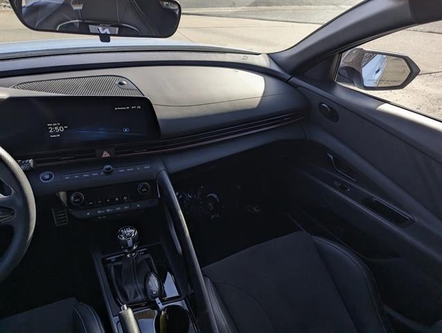 Experience pure driving excitement with this Lt. Blue 2025 Hyundai ELANTRA N 4dr Sedan, featuring just 6,373 miles! Powered by a 2.0L Turbo I4 engine delivering 276hp and paired with a thrilling 6-speed manual transmission, this Elantra N offers true performance for enthusiasts. Enjoy precision handling with electronic suspension control, front limited slip differential, and aluminum alloy wheels. Stay connected with a 10.25" infotainment screen, Apple CarPlay/Android Auto, Bose premium audio, and wireless charging. Advanced safety features include front and rear automatic emergency braking, lane centering, blind spot integration, rear cross traffic alert, and adaptive speed limiting. The N's sporty interior features leather-trimmed suede accents, heated front seats, and a leather steering wheel. Convenience features like push-button start, Blue Link app compatibility, and rearview camera make every drive enjoyable. Don't miss your chance to own this low-mileage, high-performance sedan-schedule your test drive today!